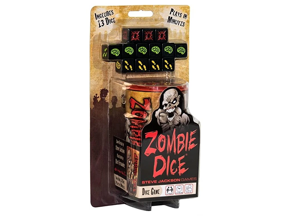 Zombie Dice is a fast, push-your-luck dice game where players roll for brains while avoiding shotguns. Quick, simple, and addictive, it’s perfect for any group looking for fun in under 10 minutes.